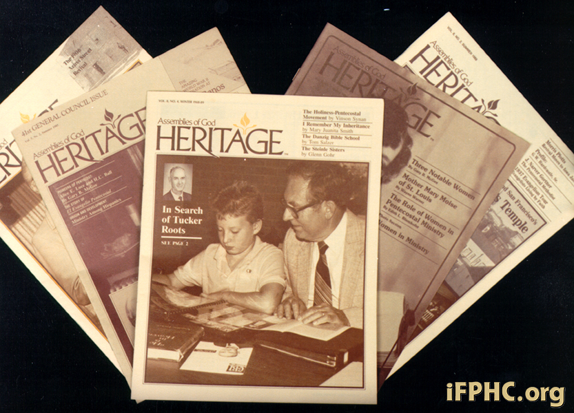 Description: A collage of Heritage magazines published by the Assemblies of God Archives; 1989.