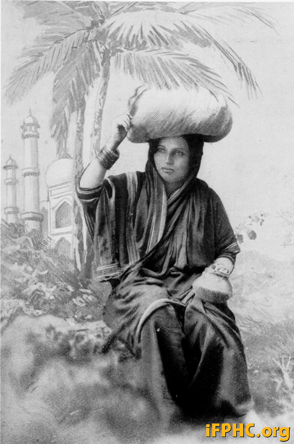 Description: Pandita Ramabai sitting disguised as a low-caste woman for purposes of investigation and rescue; 19??