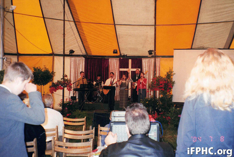 Description: A Pentecostal tent crusade in Hoyerswerda, Germany, 2004. AG missionaries Karl-Heinz and Renate Heistermann participated in the outreach.