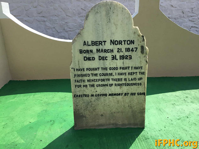 Description: Albert Norton, tombstone at Norton Memorial Christ Church Cemetery, Daund, Maharastra, India, circa 2015.